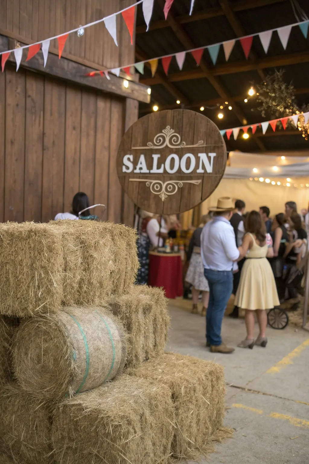 Place mock hay bales as seating options for a truly rustic feel. I once rented them for a celebration, and they added both charm and function.