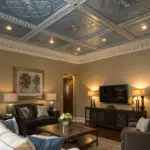 Hang drapes close to the ceiling to make the room appear taller. This is a straightforward optical illusion I recommend for enhancing your den’s perceived height.