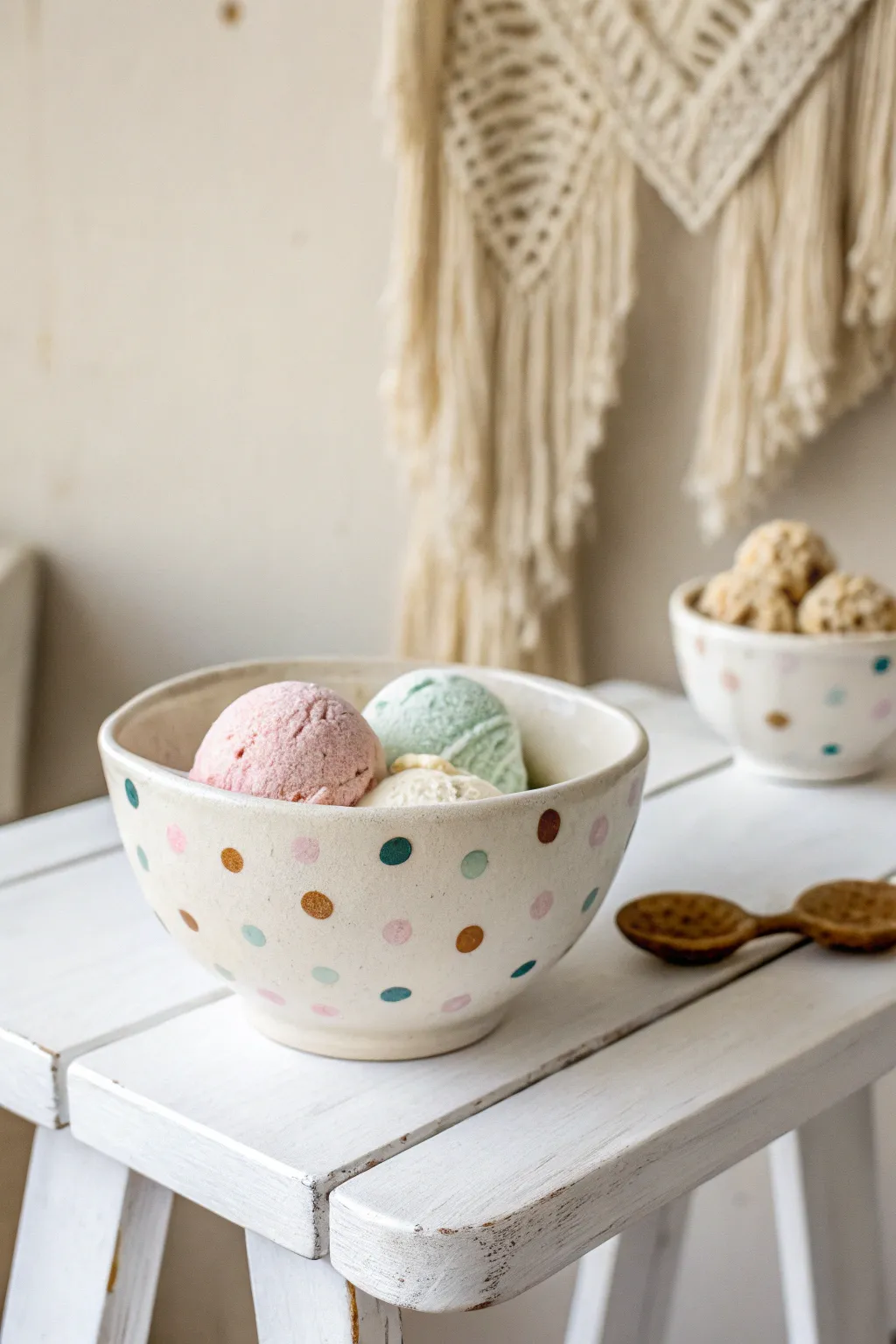 Add a playful touch to your dessert time with this charming polka dot ice cream bowl—where minimalism meets whimsy.