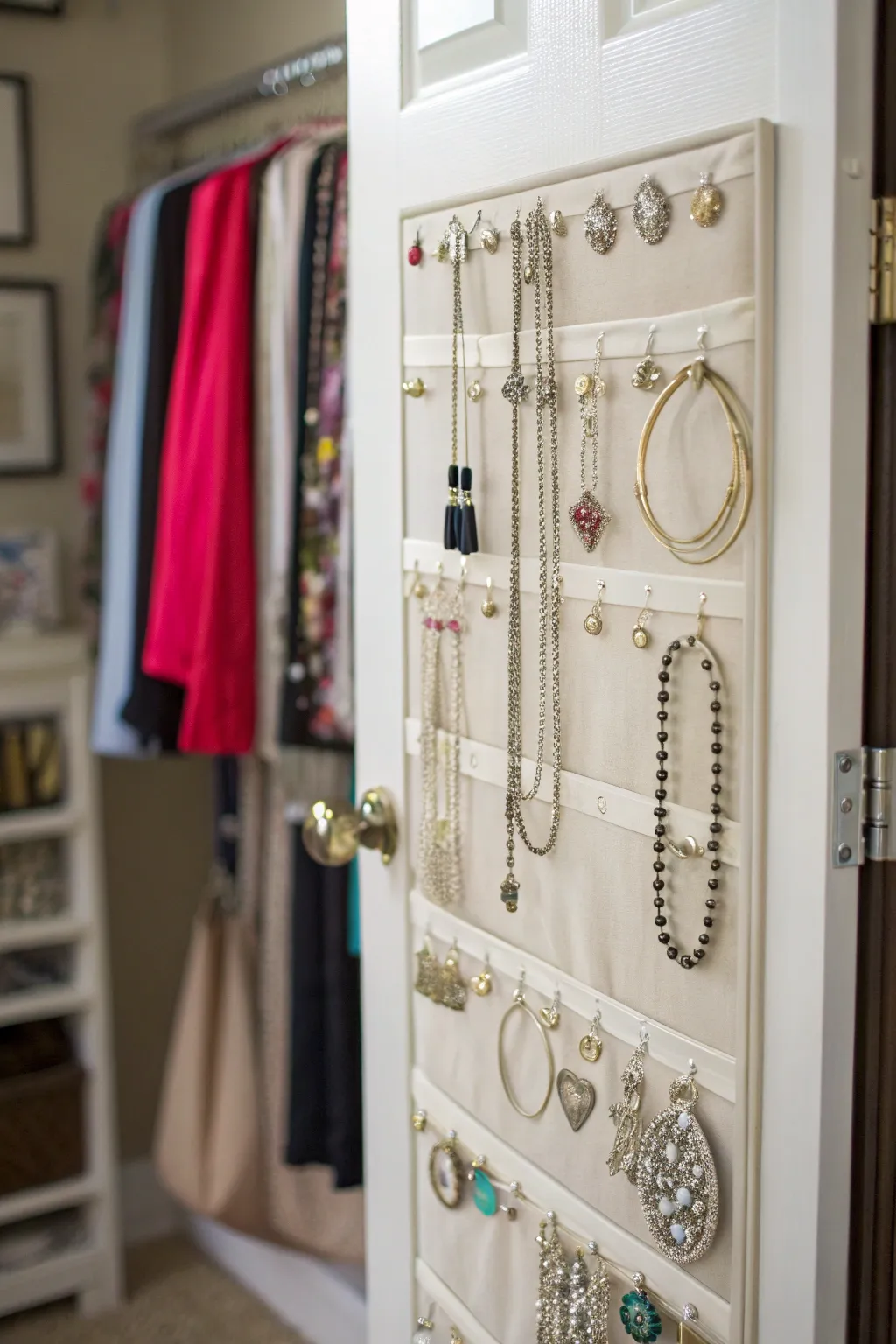 • Door-Back Jewelry Organizer: Maximize space and prevent tangles with this handy door-back organizer for jewelry.