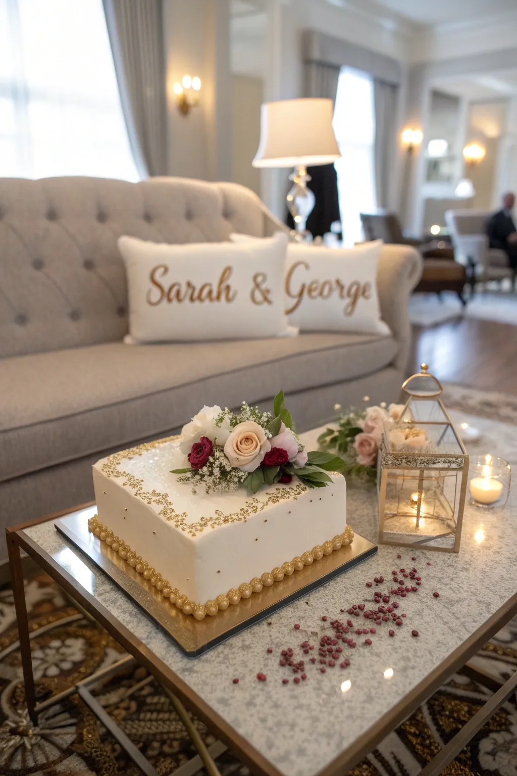 • Customized Decorative Cushions: Elevate your decor with personalized cushions displaying the couple’s names in fashionable lettering.