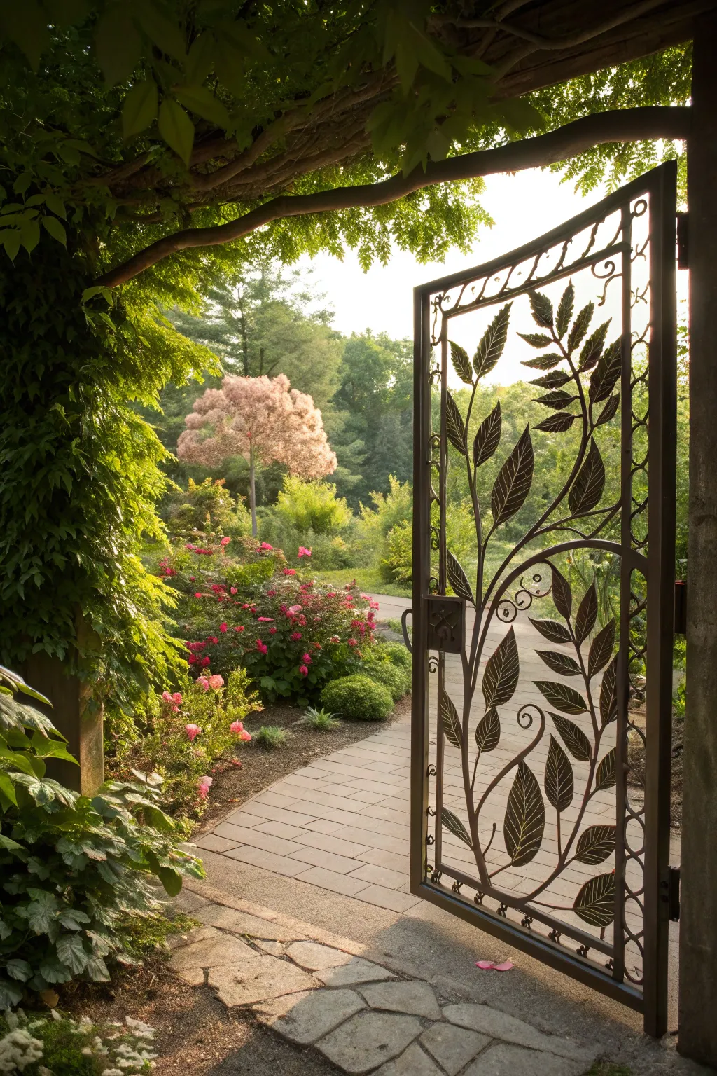 Nature-inspired gates with designs like trees or leaves can blend seamlessly with natural surroundings. This style brings a piece of the outdoors right to your entrance.