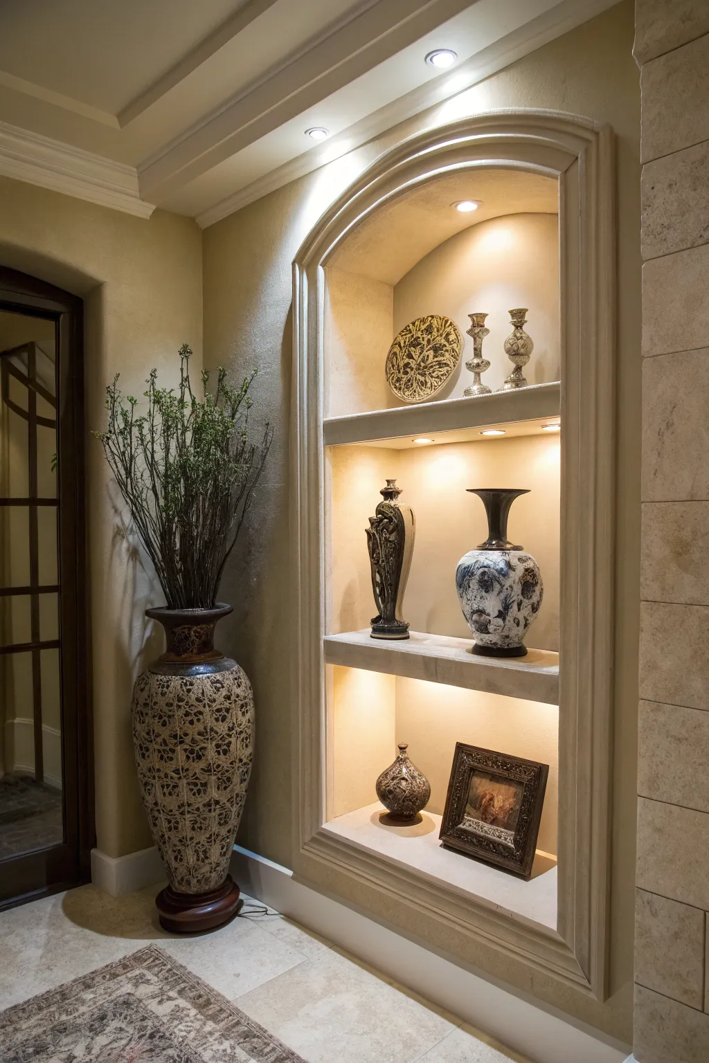 Highlighting can bring notice to specific decor elements inside a niche. I believe it injects a hint of spectacle and sophistication to the area.
