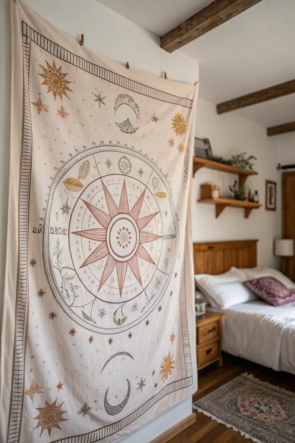 Show character with a custom star sign wall decor. I gifted one; it adds a mystical feel.
