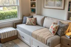 Seats with hidden storage are a dream for those needing extra seating and storage space. I’ve used them to cleverly stow away blankets and cushions.