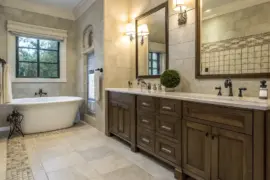 Limestone flooring is both stylish and countryside, featuring its soft, natural hues. I generally suggest it for a timeless appearance that complements a variety of design elements.