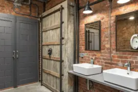 - Rustic Barn Door Hardware Kit: Upgrade your bathroom with this hardware kit, instantly adding space and farmhouse charm.
