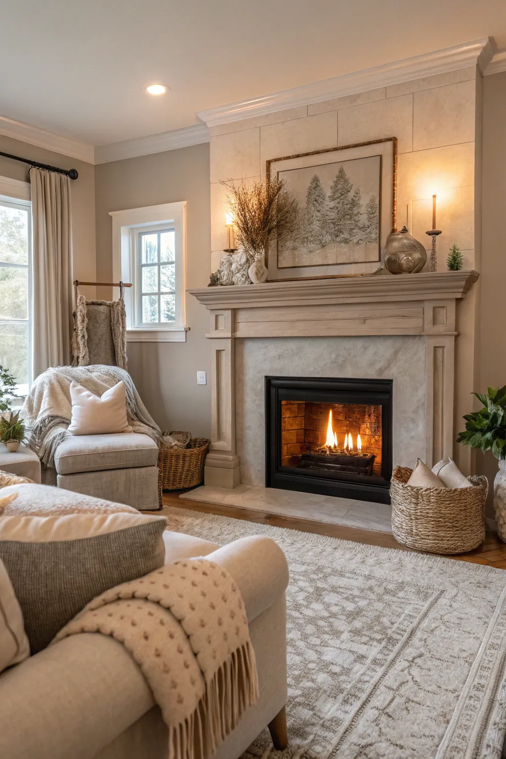 Place comfortable seating around the fireplace to encourage people to gather. This layout encourages conversation and improves the room’s overall feel.