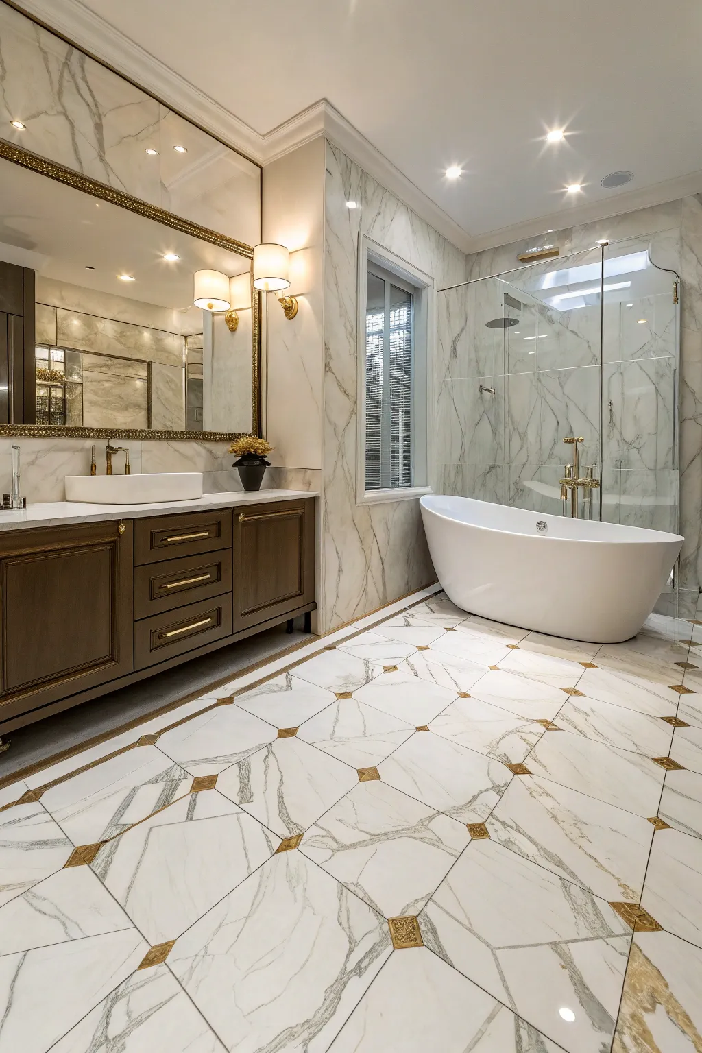 - Calacatta Vinyl Tiles: Elevate your bathroom with elegant marble-style vinyl tiles, combining beauty and resilience.