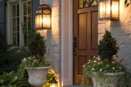 • Outdoor Wall Torches: Enhance your entrance with elegant lanterns, providing warm lighting beside your rose door.