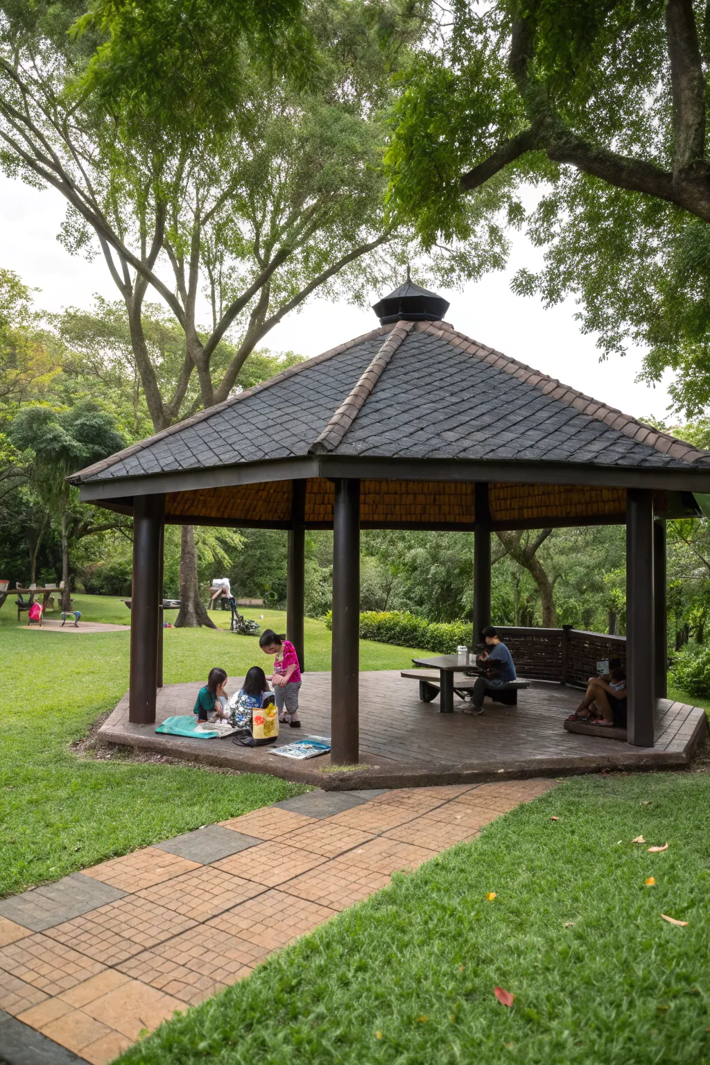 - Tree Bark Floor Tiles: Refine your gazebo with soft, eco-friendly tree bark tiles, perfect for barefoot comfort and style.