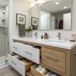 Employ cane fixtures with integrated lights for a natural vibe. I enjoy how they fuse seamlessly with the backdrop, creating a tranquil environment.