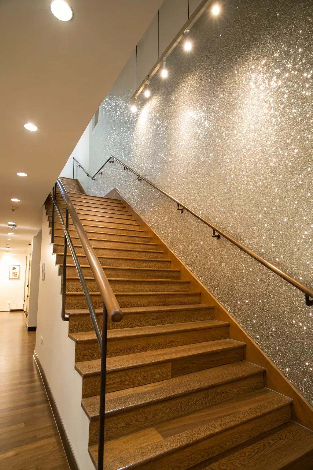Render your staircase a center of attention by integrating a glitter accent wall alongside the steps. It’s an unexpected design revolution that can refine the comprehensive aesthetic of your dwelling.