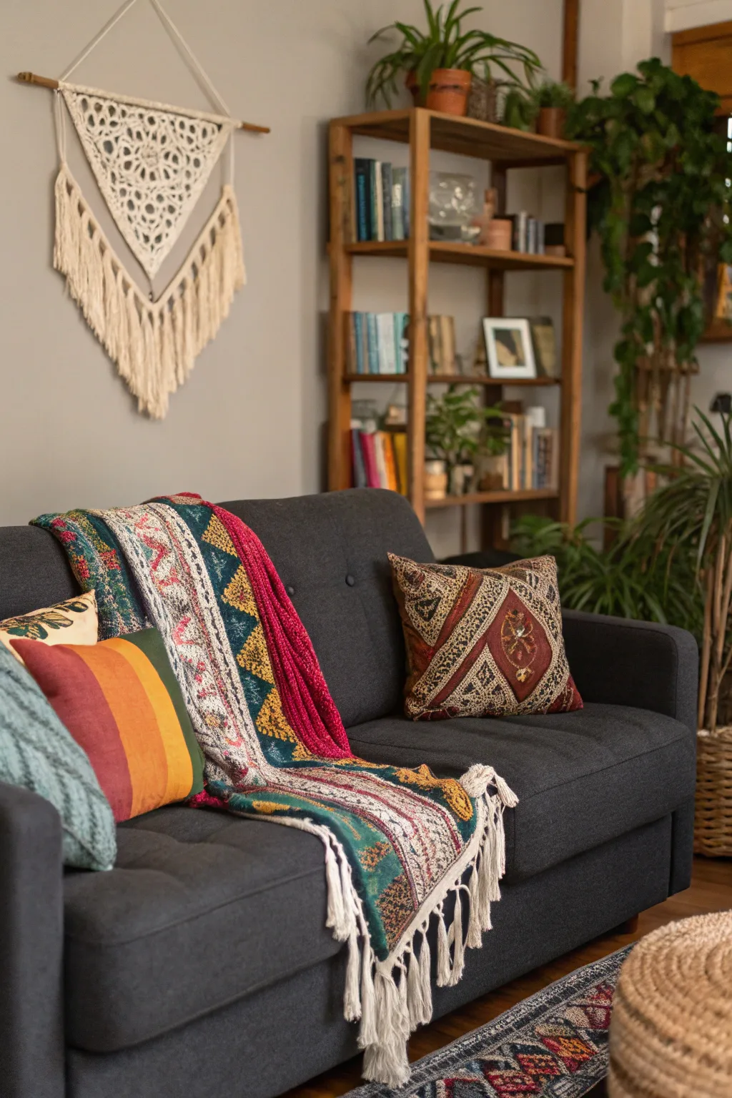 - Vibrant Boho Throw: Enliven your couch with a vibrant, boho-style throw for a snug, eclectic vibe.