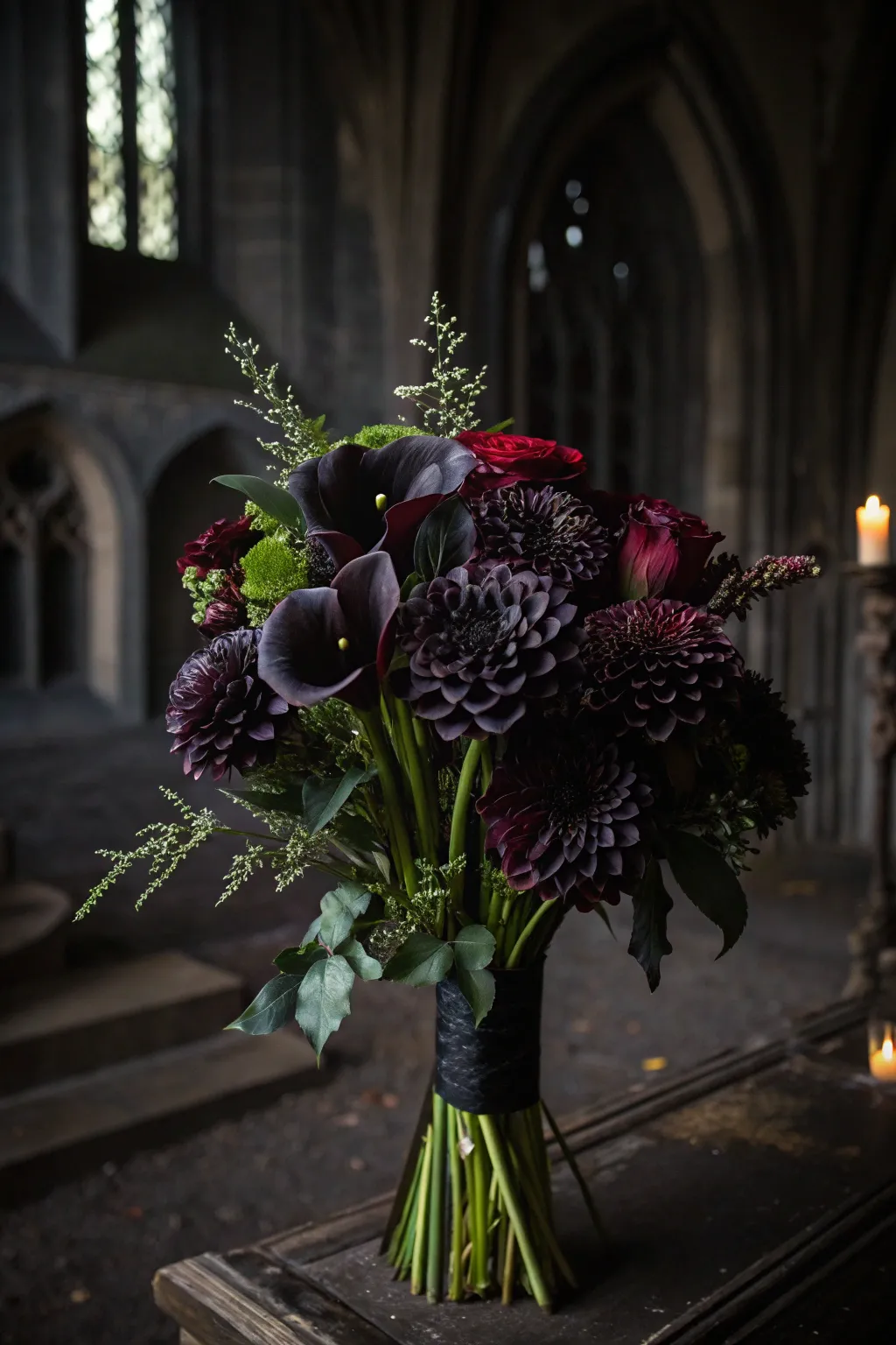 - Onyx Hued Ribbon: Complete your bouquet with an exquisite onyx hued ribbon, adding an elegant and theatrical touch.