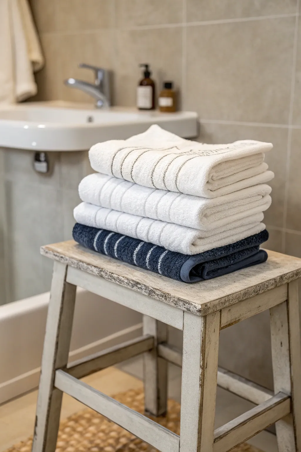 • Showy Towel Sets: Incorporate a dash of color with these soft, tasteful towels, ideal for displaying on a ladder.