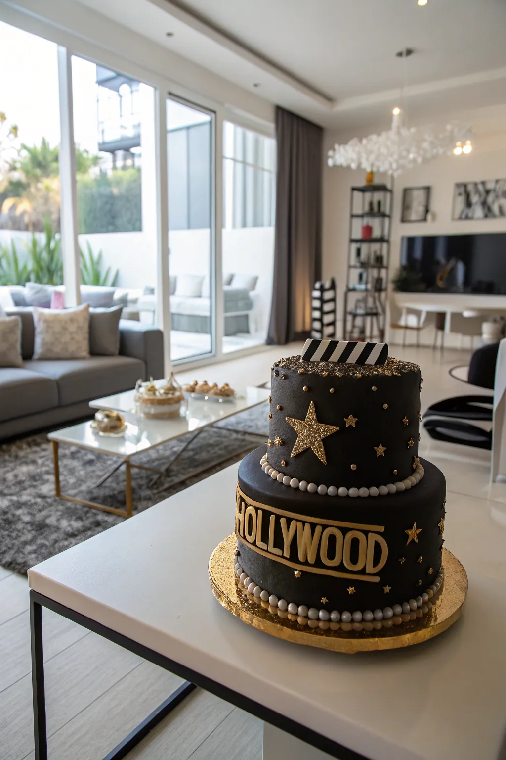 Spotlights cast a great glow on this Hollywood-themed cake.