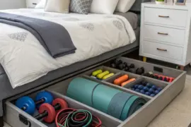 - Stacked Fitness Rack: Organize different fitness items with a rack that has multiple levels, keeping everything tidy and in its place.