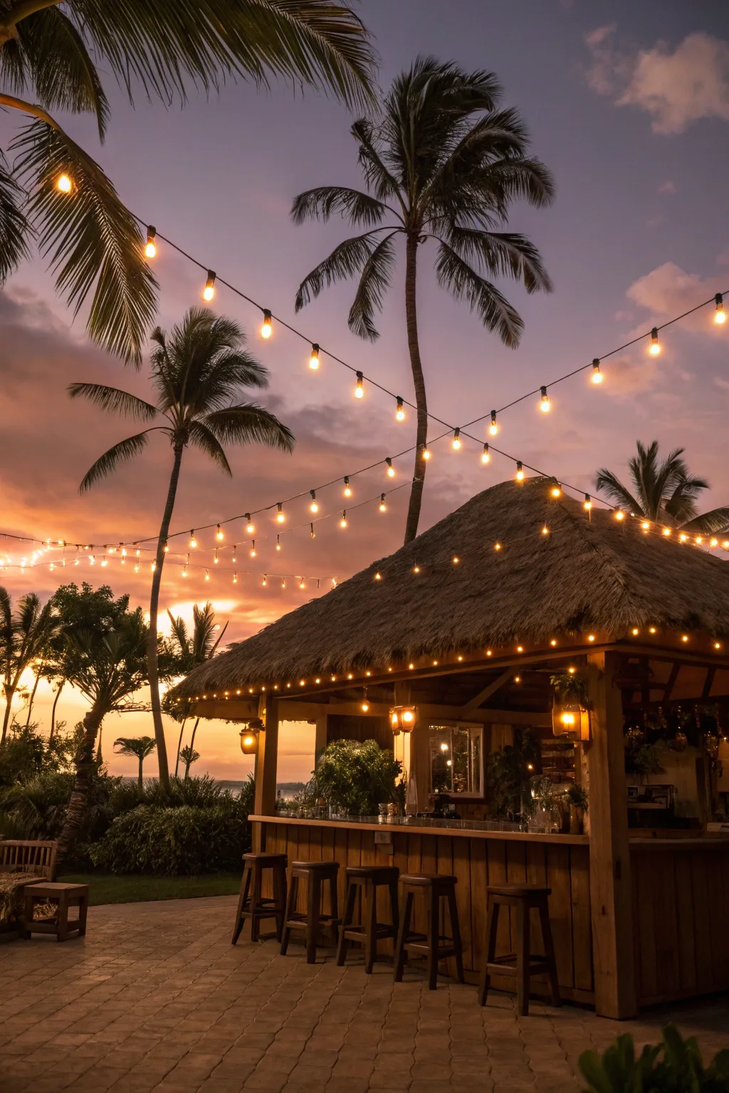 Begin with a bamboo bar structure to establish the quintessential island atmosphere. Bamboo is both sturdy and visually appealing, lending your bar an authentic feel that instantly whisks you away to a tropical haven.