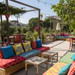 - Ornamental Cellular Pattern Cushions: Rejuvenate your décor through ornamental cushions showcasing a contemporary cellular pattern and vivid colors.
