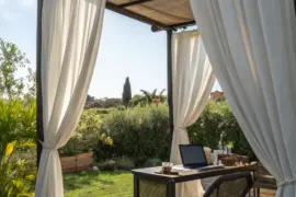- Crisp White See-Through Drapes: Allow light to enter gently with crisp white see-through drapes, which establish an open and breezy feel.