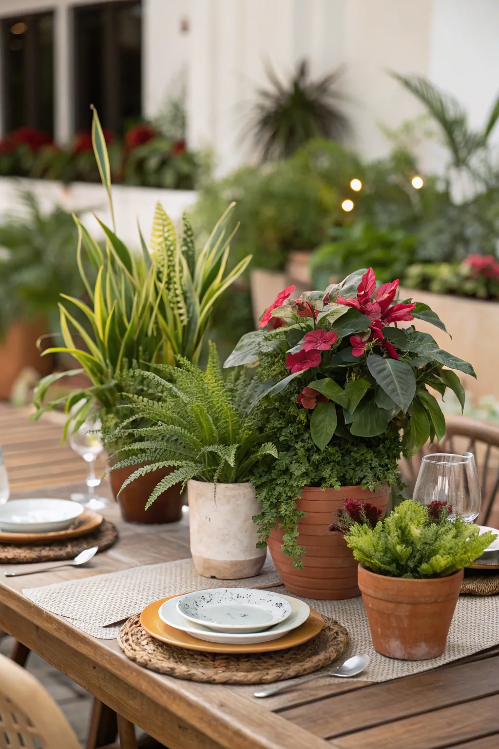 • Diverse Indoor Plant Mix: Incorporate a variety of vibrant live plants, adding lively greenery to your dining table.