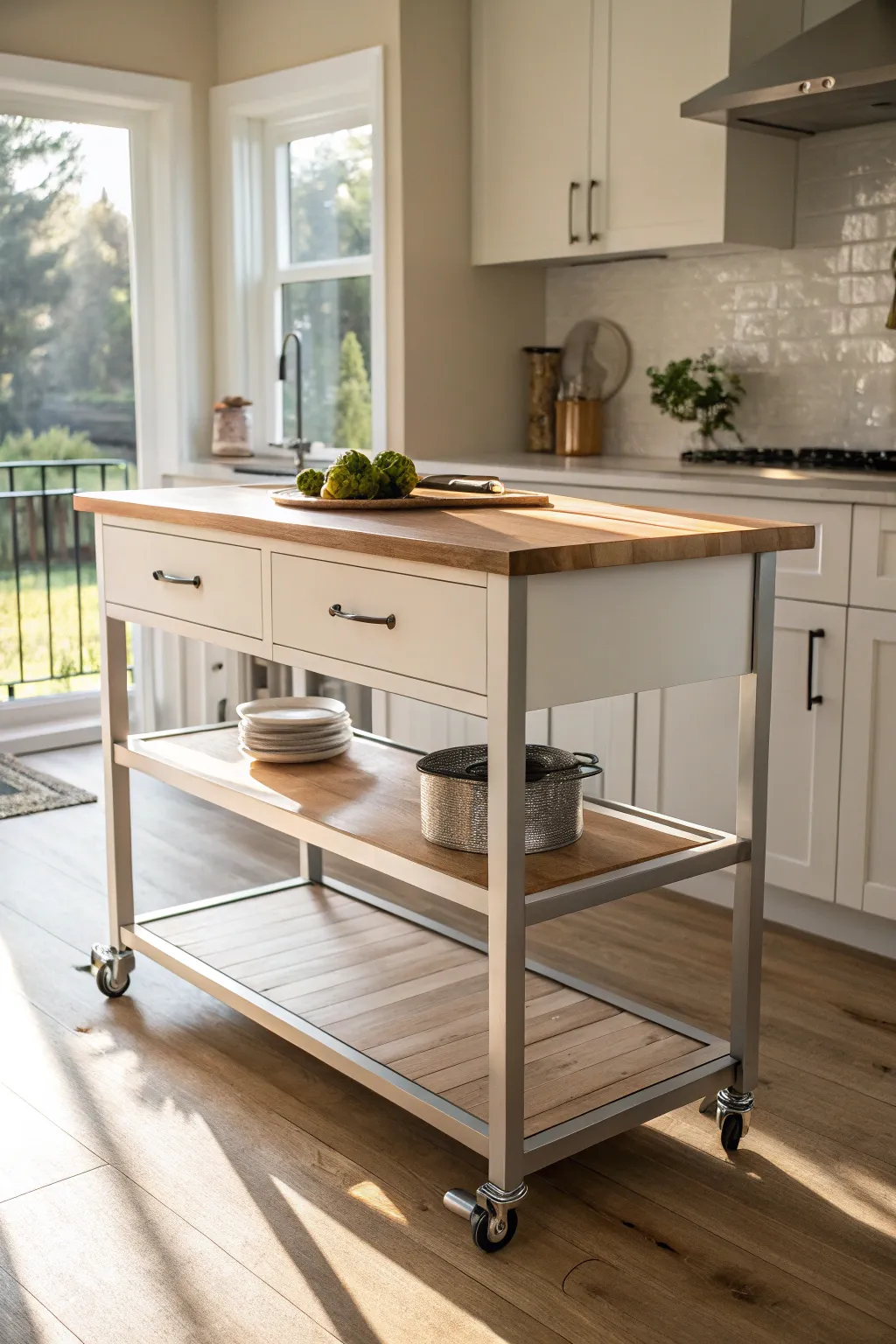 • Transportable Cooking Center: Amplify both practicality and visual appeal by incorporating a portable workstation into your energetic kitchen tasks.