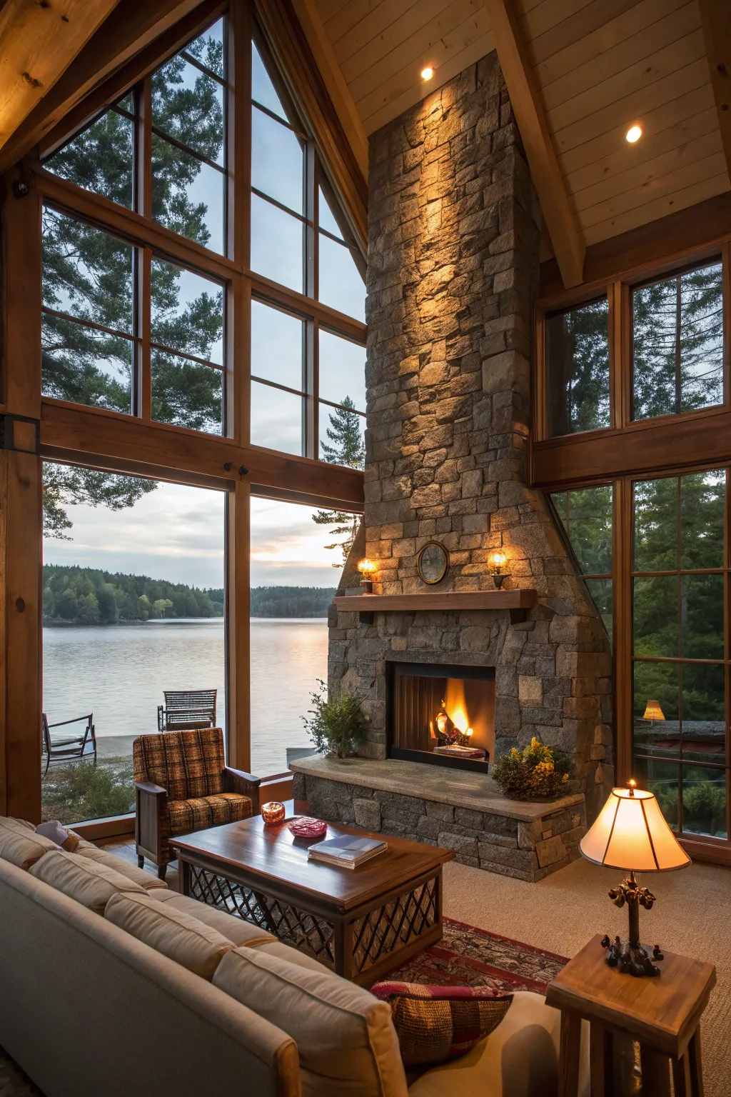 Include a small fountain or indoor water feature for peace. The sound of water is naturally calming and complements the lakeside environment.