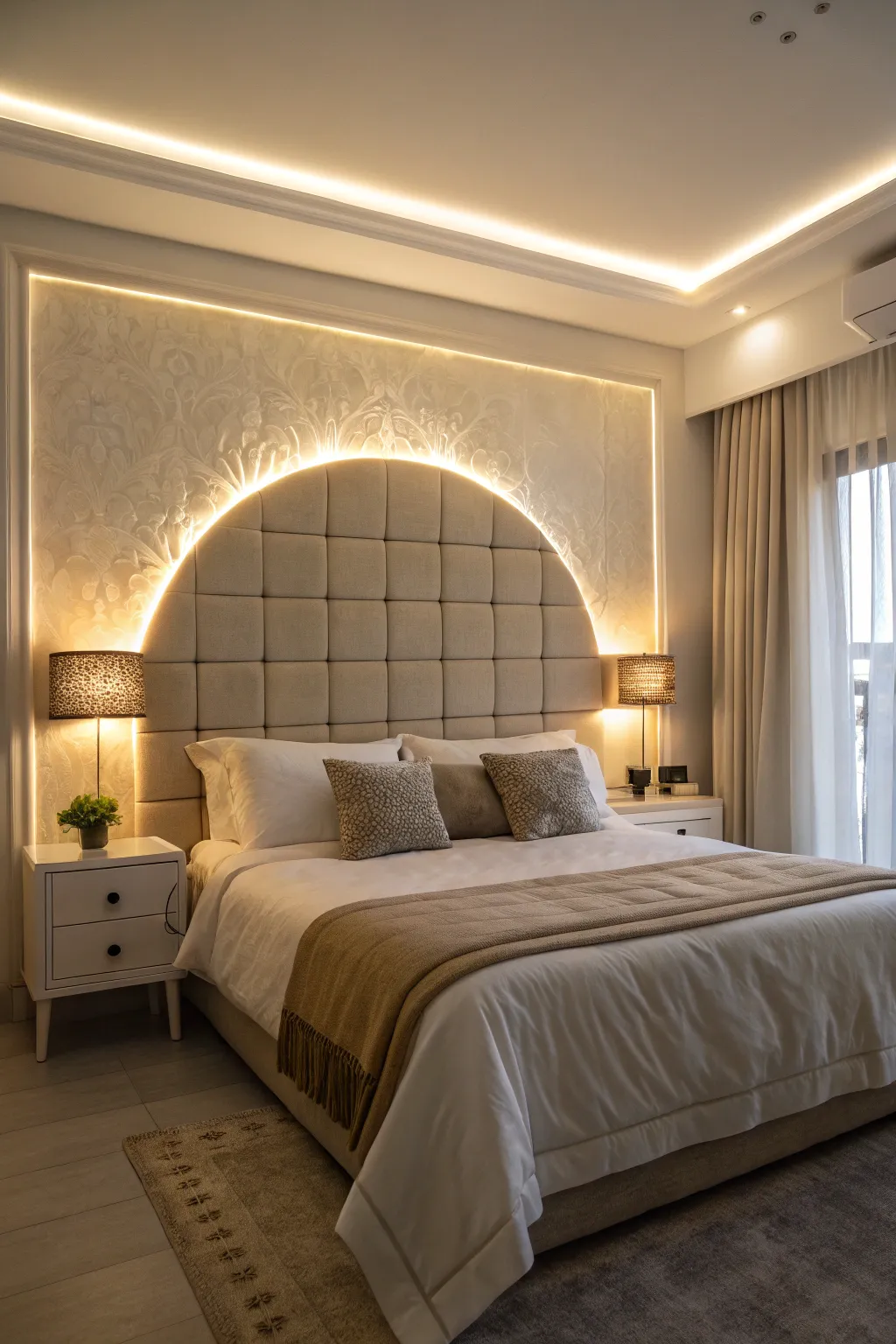 A backlit headboard contributes a delicate halo of light, impeccable for conceiving a center point within the bedroom. It signifies my confidential means of rendering the bed resembling a sumptuous showpiece.