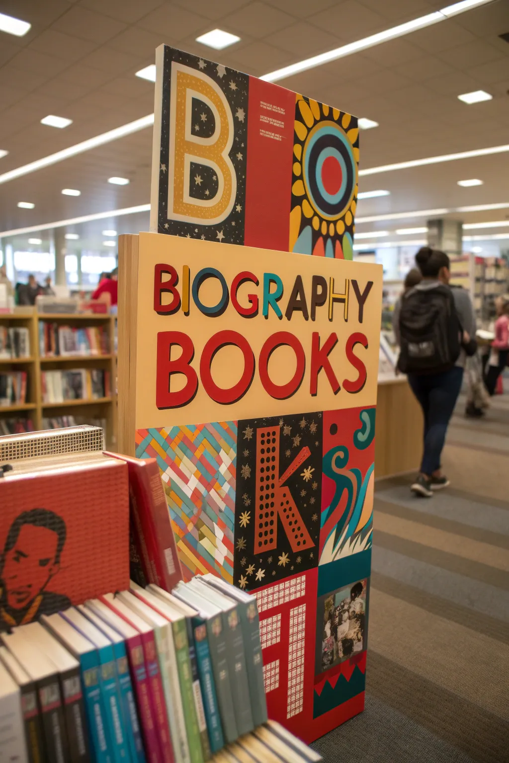 Shelf prompts with captivating facts or quotes from the biographies can be a subtle yet impactful way to pique interest. I believe they add a personal element to the display.