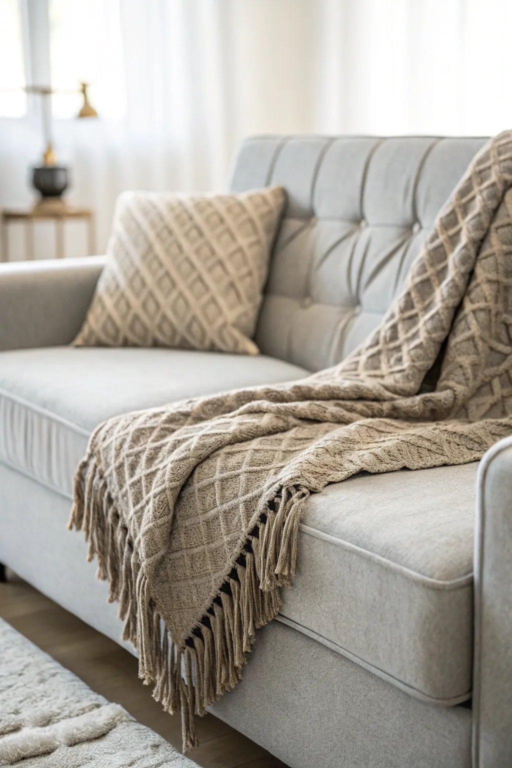 A light grey couch is such a handy thing to have when you’re decorating! Whether you’re into super modern looks or want something really cozy, it’s like a blank canvas that’s just waiting for your personal touch.