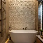 Add depth with a textured accent wall, using materials like brick, stone, or faux finishes to create added dimension.