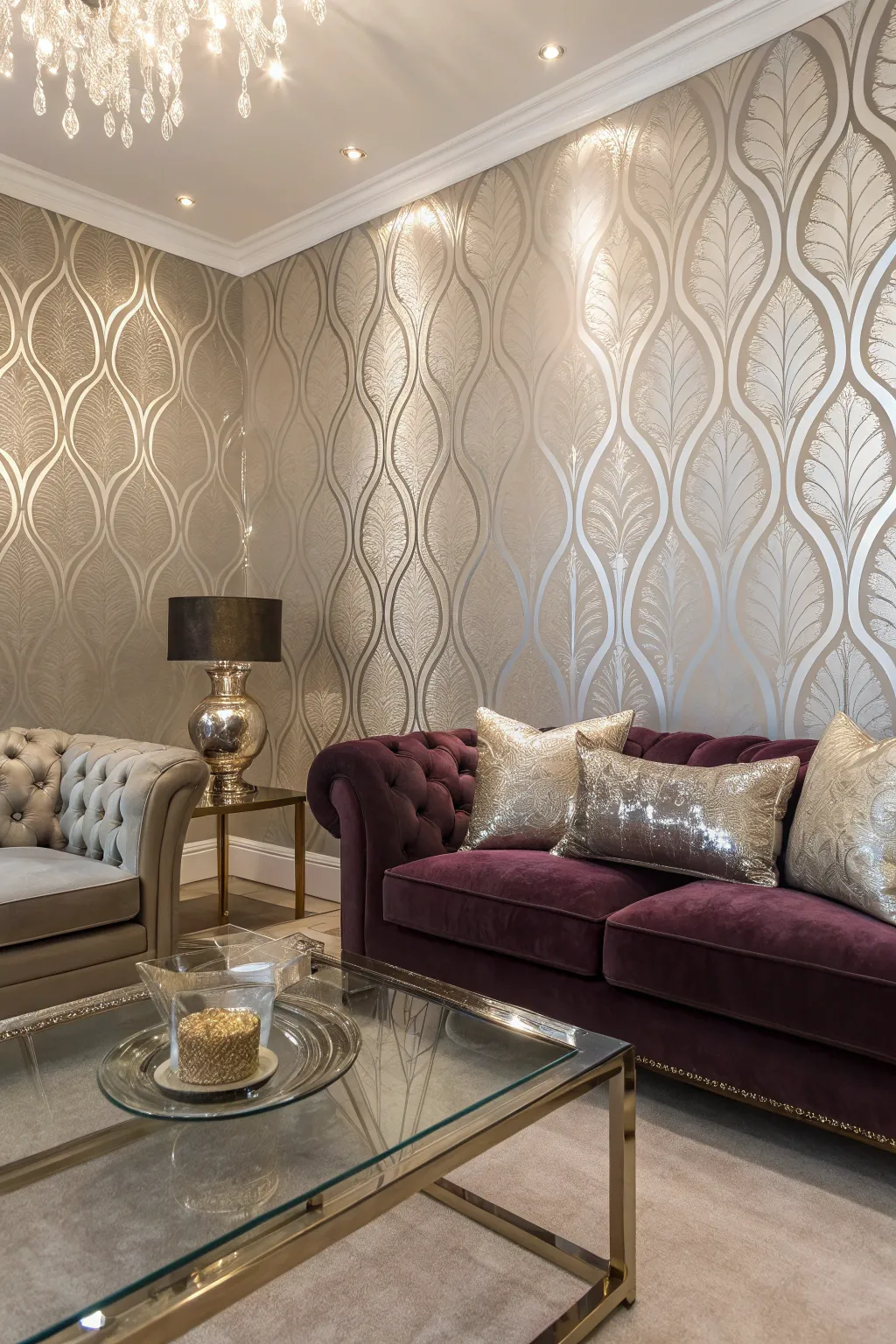 Add a hint of luxury with metallic accents in your wallpaper. These shimmering details can catch the light beautifully, adding dimension and richness to your decor.