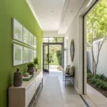 - Vinyl Wallpaper in Mid Century Stripes: Enhance your hallway’s aesthetic with durable vinyl wallpaper, featuring charming retro stripe patterns.