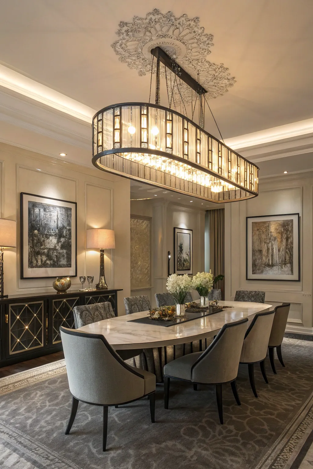 An eye-catching lighting fixture is capable of being the defining feature of your dining room. For my projects, I find joy in utilizing artistic chandeliers or pendant lights to inject a sense of drama and refinement.