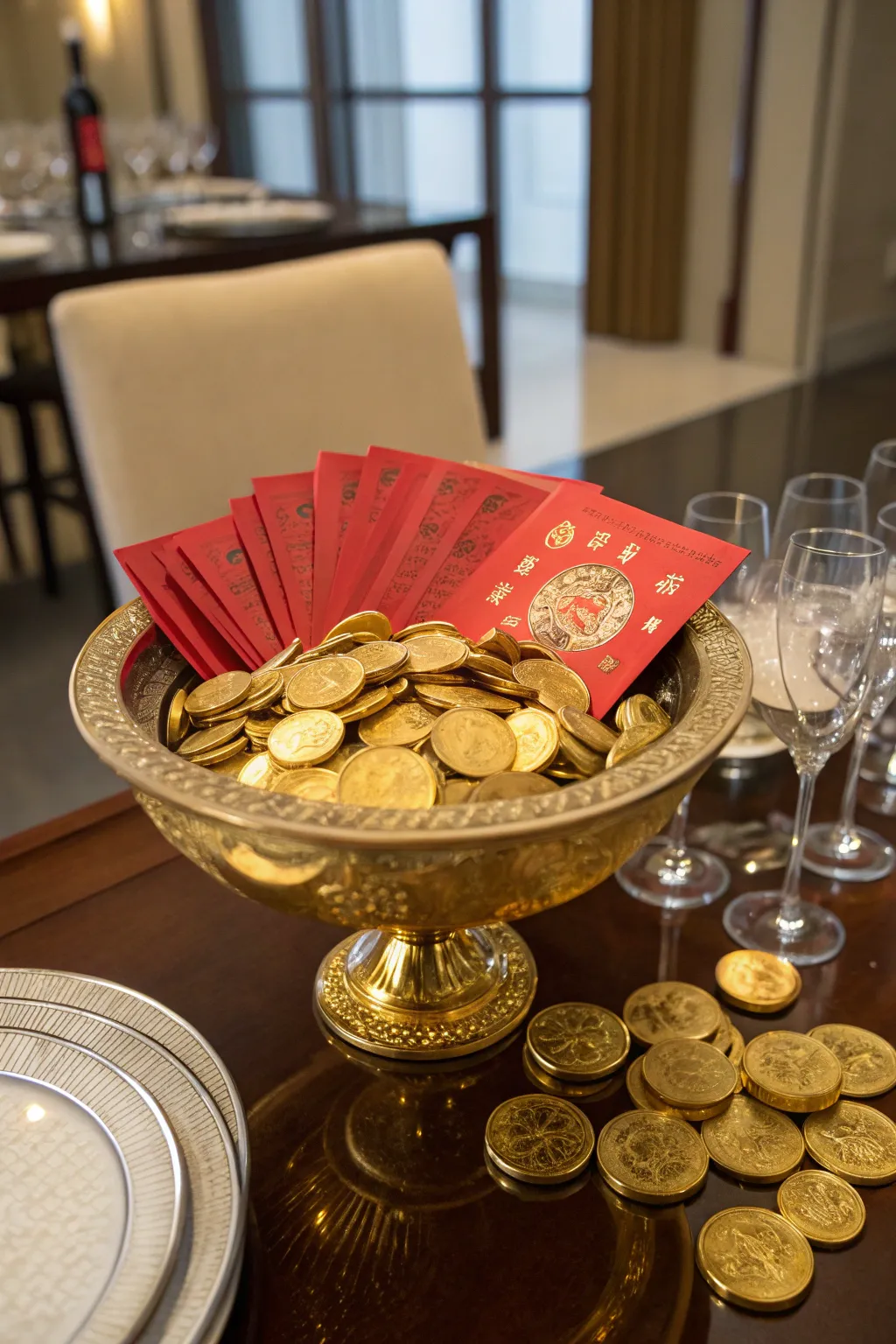 - Crimson Envelopes for Celebrations: Incorporate traditional crimson envelopes to complement your gilded discs, symbolizing luck and prosperity.