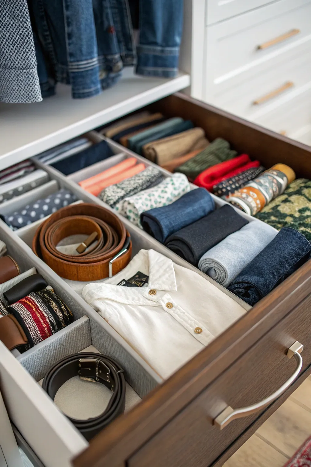 Organize different types of clothing and accessories in one drawer precisely. It’s how I manage many items without things getting messy.