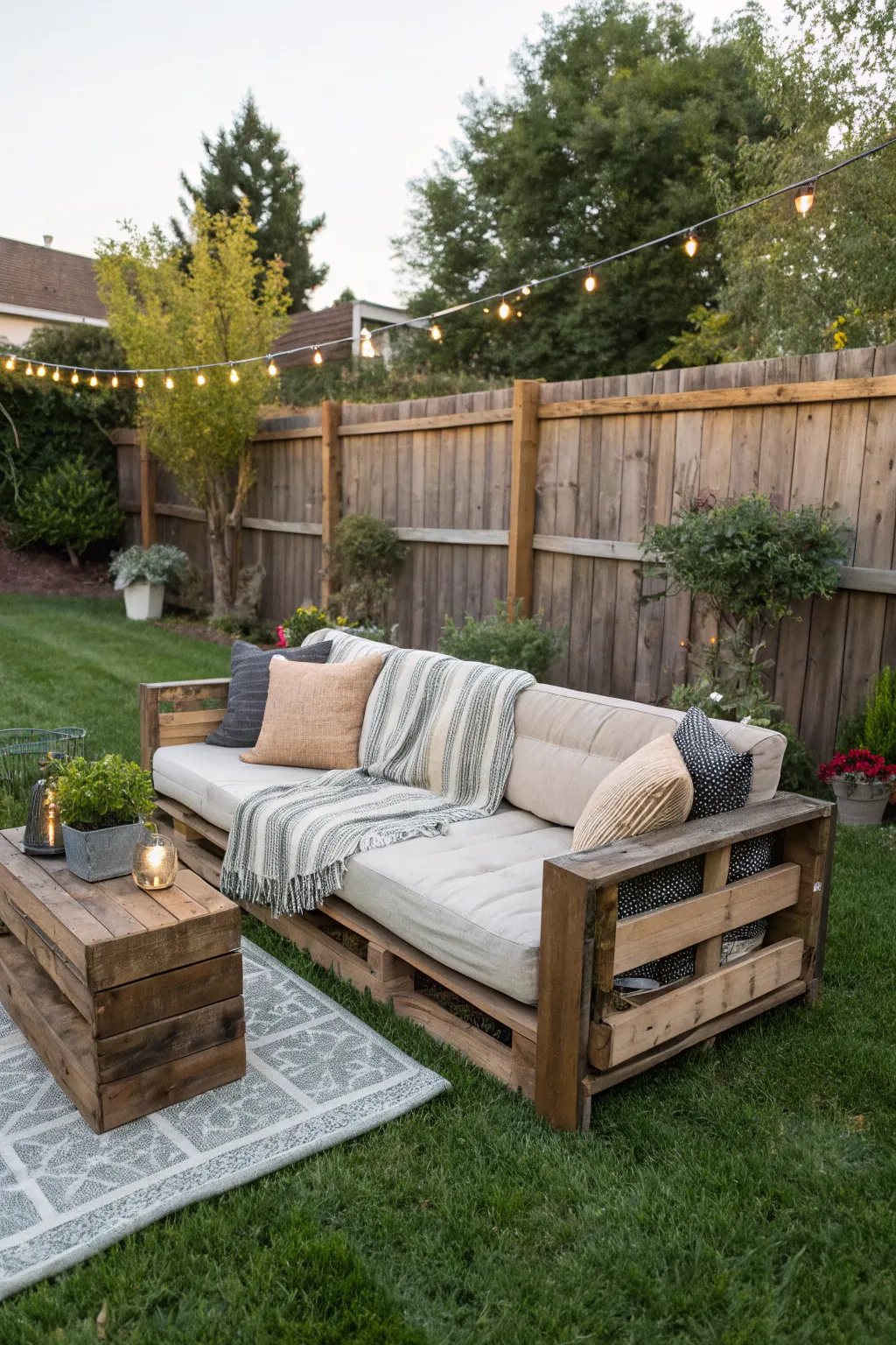 A wooden couch enhances rustic charm and can be tailored with various finishes or hues. I crafted mine utilizing salvaged timber, injecting character into my garden area.