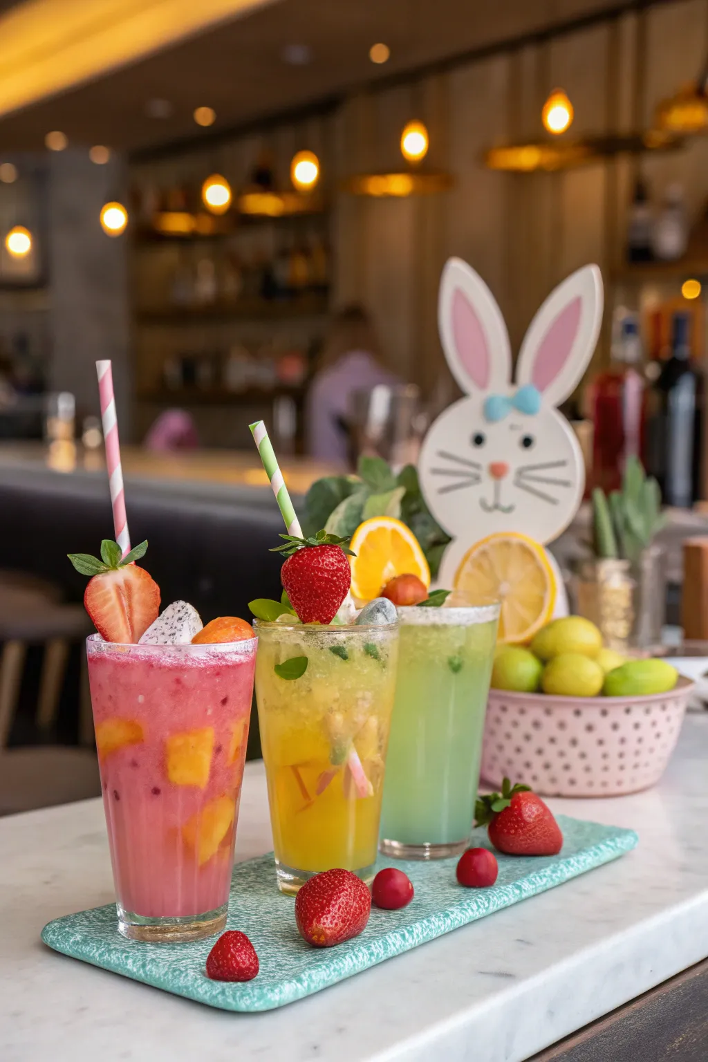 For the adults, create a cocktail area with Easter-themed drinks. For a sophisticated touch, add playful garnishes and fresh fruits.