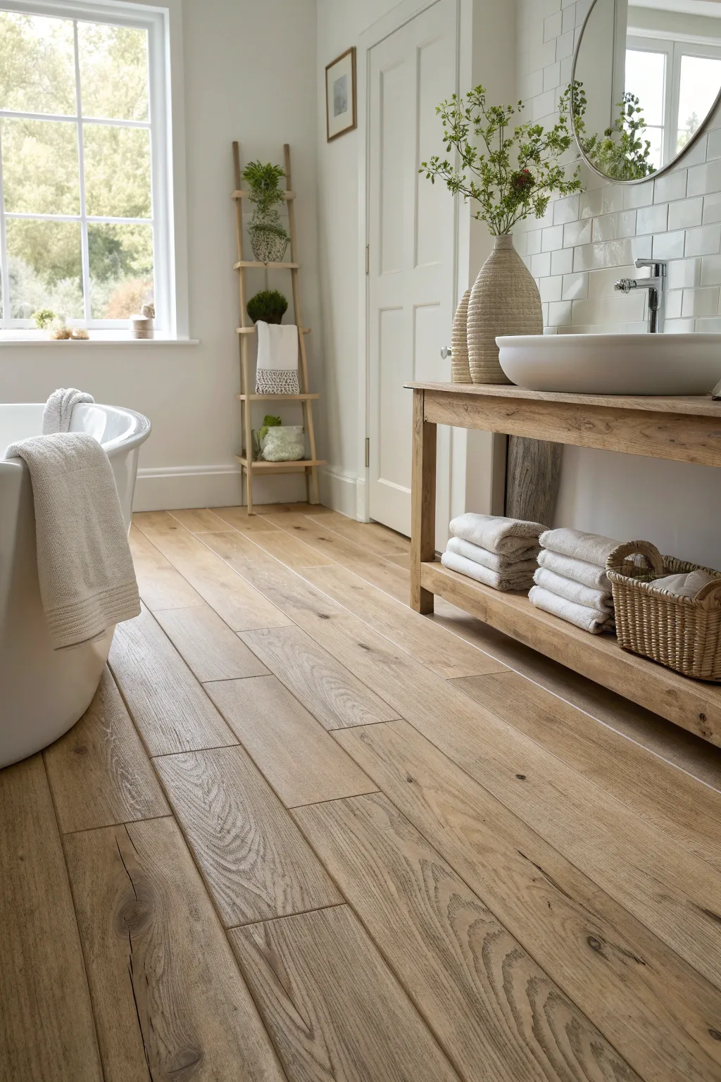 Use vinyl planks to create a smooth transition between your restroom and nearby rooms. This method improves the flow and connectivity of your home.