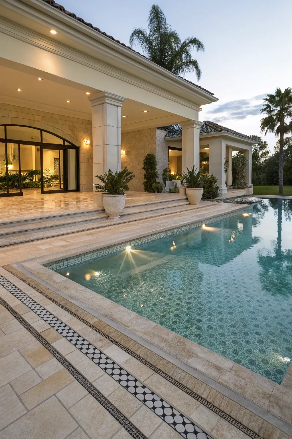 Geometric mosaics contribute to an air of refined elegance for your pool.