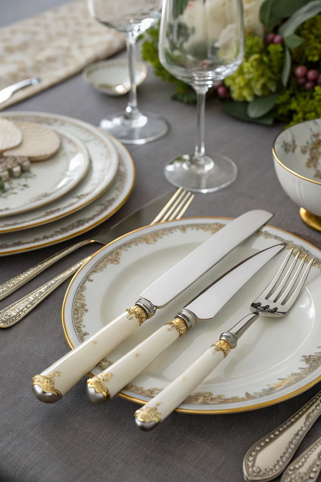 Introduce class to his dining experience with a porcelain silverware holder set. These subtle yet effective pieces prevent cutlery marks on linens, which I truly appreciate during formal dinners.