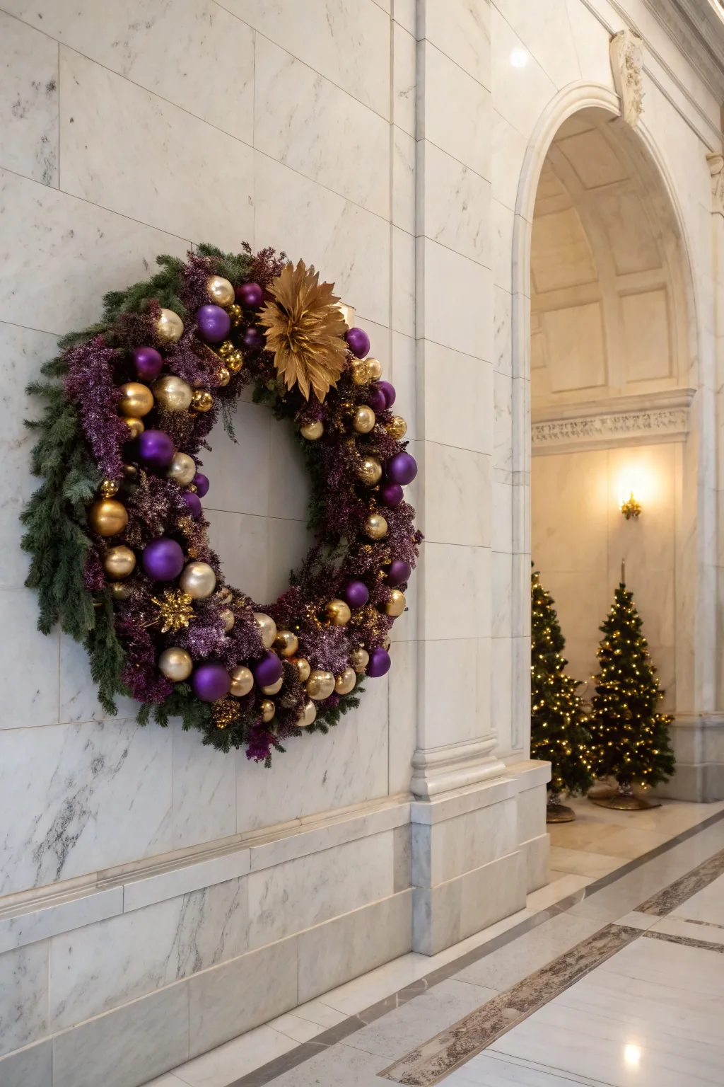 - Plum and Gold Holiday Garland: Illuminate your entrance with this breathtaking plum and gold garland, ideal for festive grandeur.