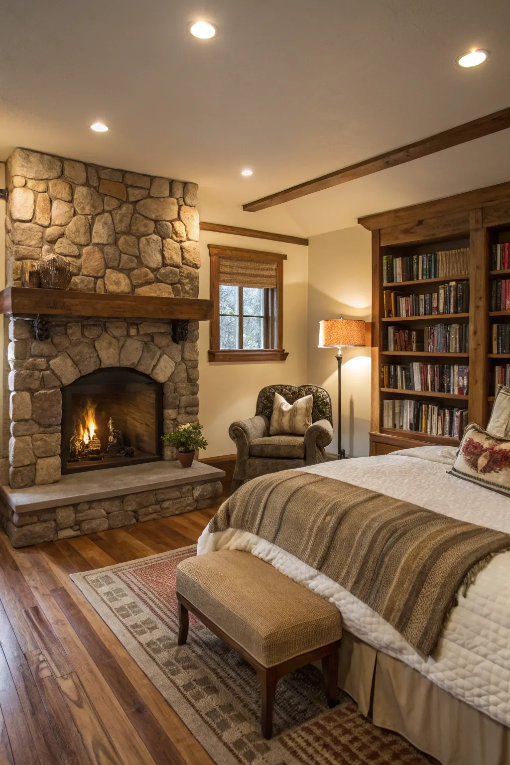 A stone or brick hearth is an essential element that brings both heat and a central point. I cherish how a hearth can transform a bedroom into a haven of rest.