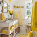 Yellow accents can elevate your bathroom’s opulence. I remember adding yellow trim on looking glasses and parts for a majestic touch.
