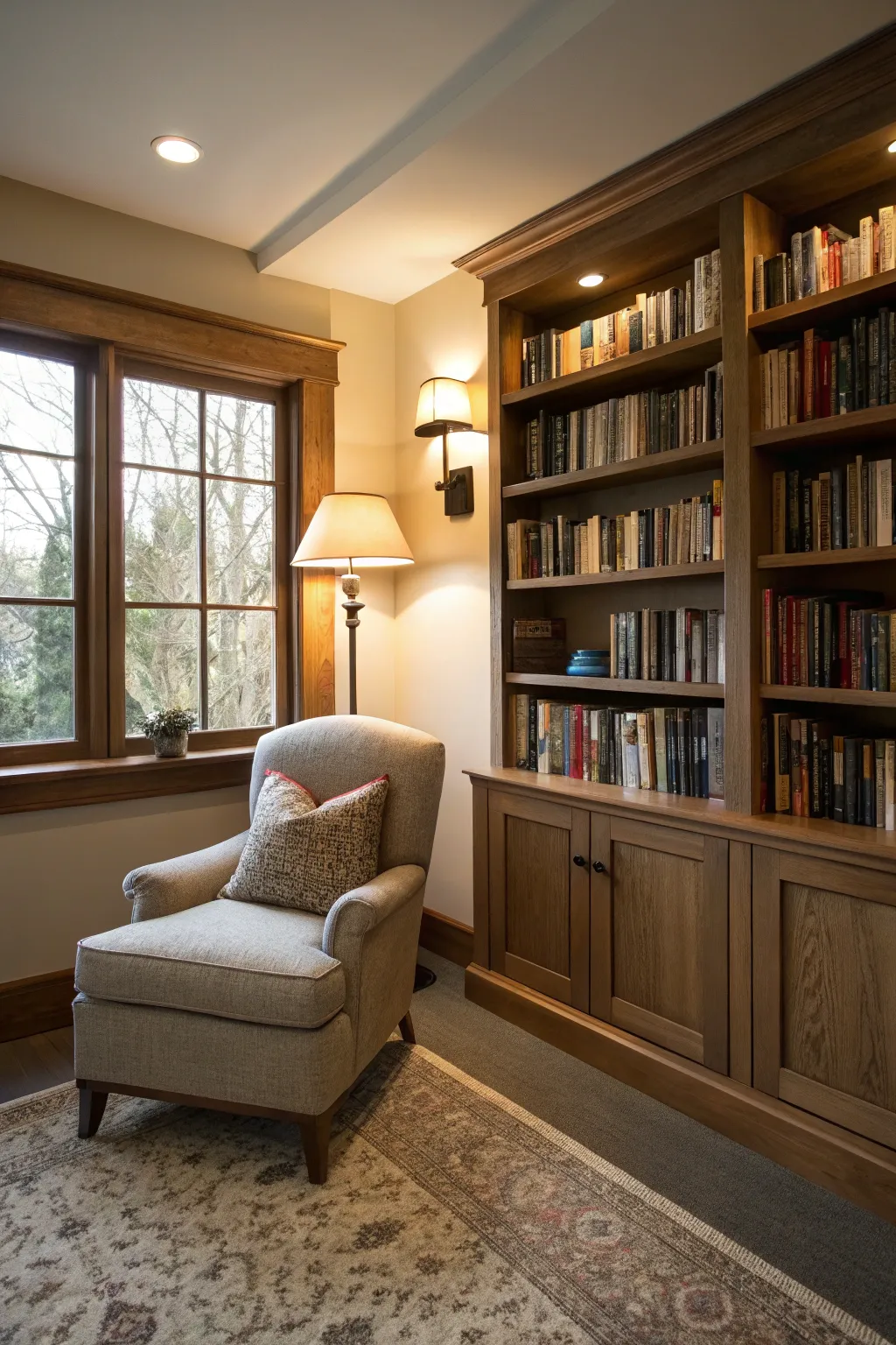 Craft a tranquil getaway with a personal library filled with all your favorite books. I find that including soft lighting and comfortable seating creates a peaceful setting.