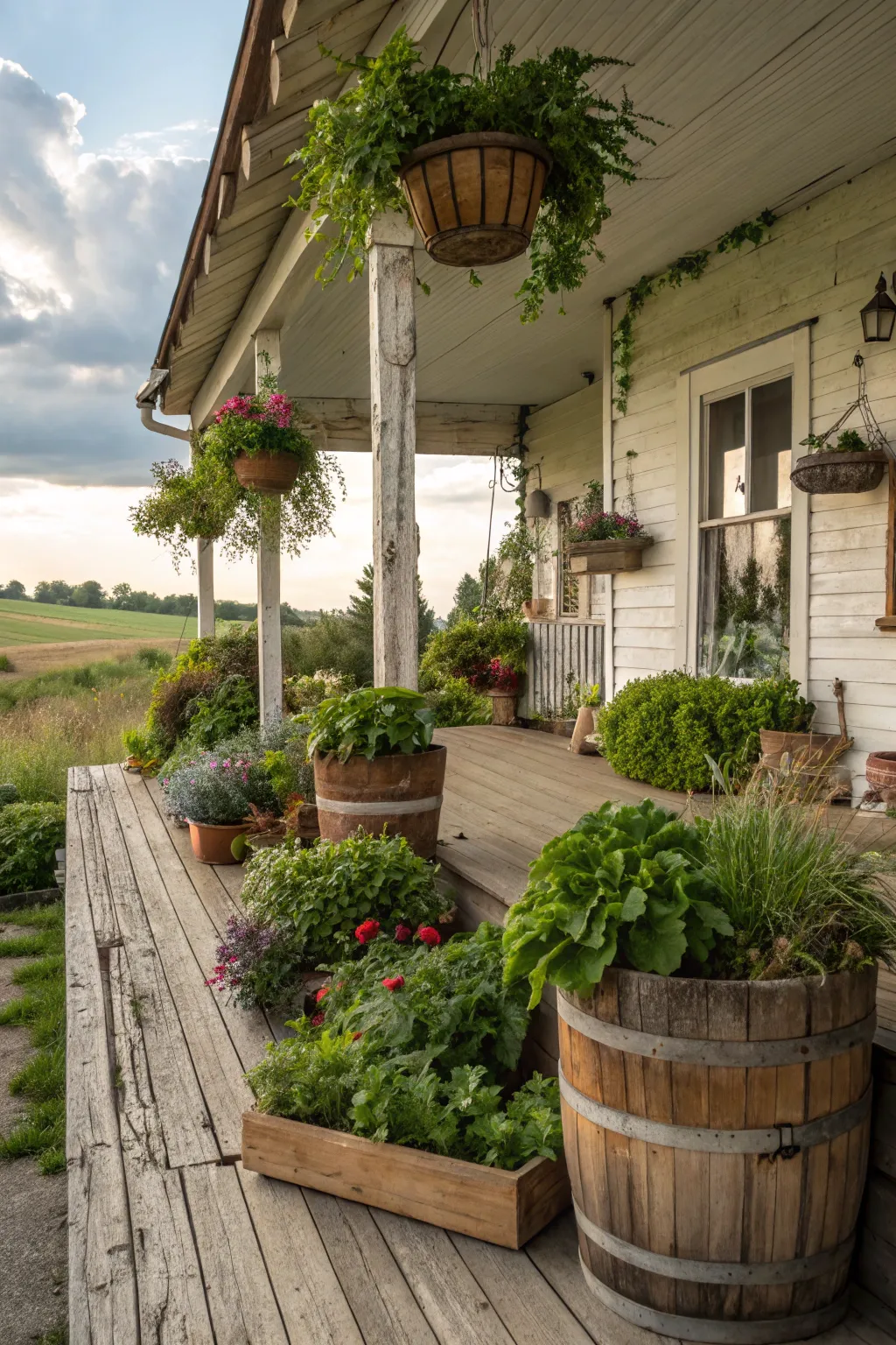 - Weathered Timber Bench: Elevate your porch with a weathered timber bench, the perfect spot to relax and welcome the day.
