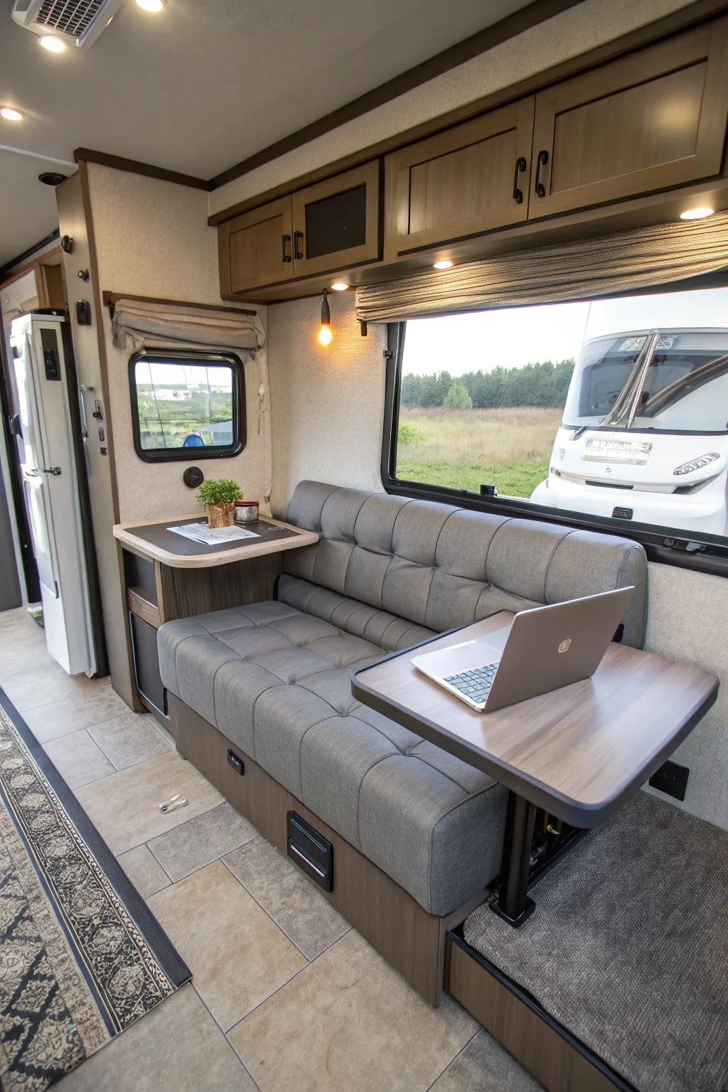 - Convertible Sofa Desk: Maximize space with this sofa that quickly turns into a functional desk for your RV.