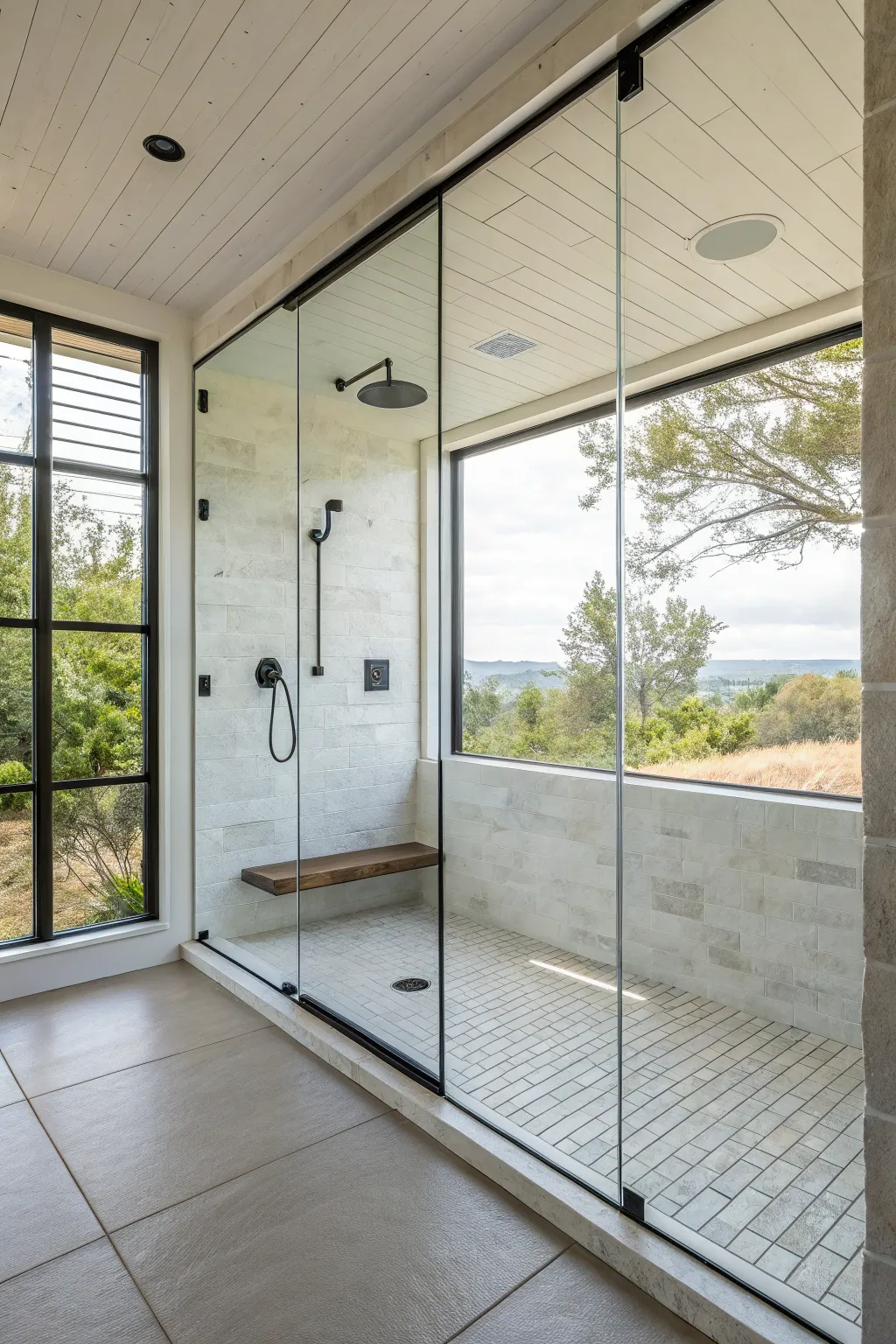 For a striking statement, full-length windows in a shower space can achieve dramatic flair. I consider this choice perfect for homes with secluded outdoor areas, offering a truly immersive experience.