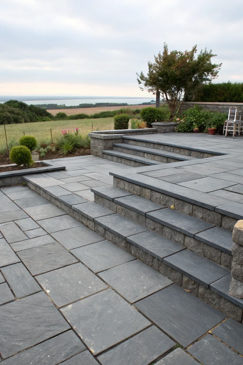 Introduce steps and elevations within your stone patio, generating dimension and curiosity. I’ve cleverly employed this technique to distinguish various zones, such as eating and unwinding spaces.